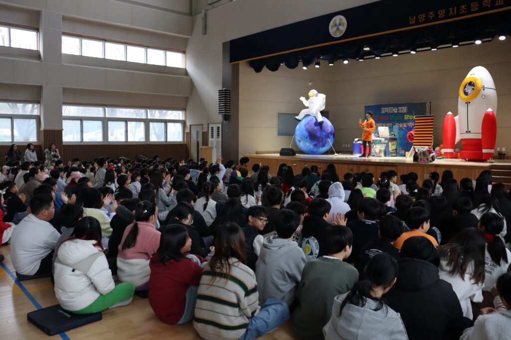 지난 12월 24일, 크리스마스 이브를 맞아 남양주 양지초등학교 전 학년 친구들과 함께 ‘과학마술 체험쇼’를 진행했습니다. 한 해를 마무리하는 마지막 공연이자 성탄 전야라 더욱 설레는 마음으로 학교를 찾았는데요.